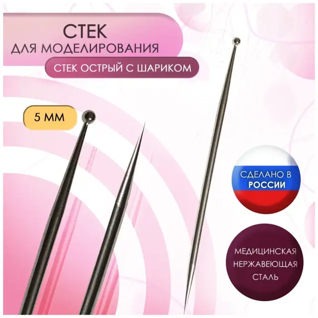 Плоский тонкий наконечник с одной стороны стека поможет при поклейке волос, а шарик с другой стороны необходим, чтобы сделать аккуратную ямку или бороздку со скругленными краями.